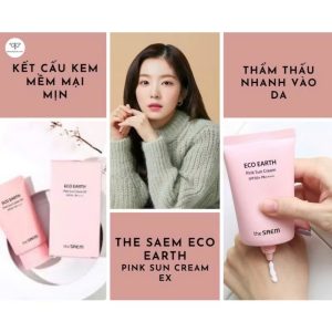 Kem chống nắng The Saem Eco Earth Power Pink SPF 50+ PA++++ chứa các thành phần chống nắng và chiết xuất từ các loại thảo mộc và dầu hạt.